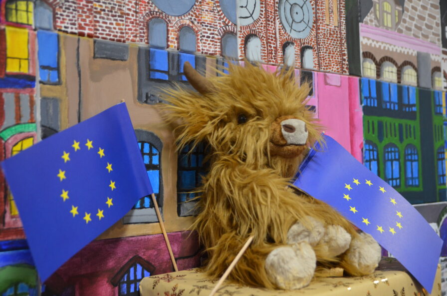 Die Holstenschule hat ein neues Europaschulmaskottchen: Ein kleiner (schottischer Hochland-) Stier.