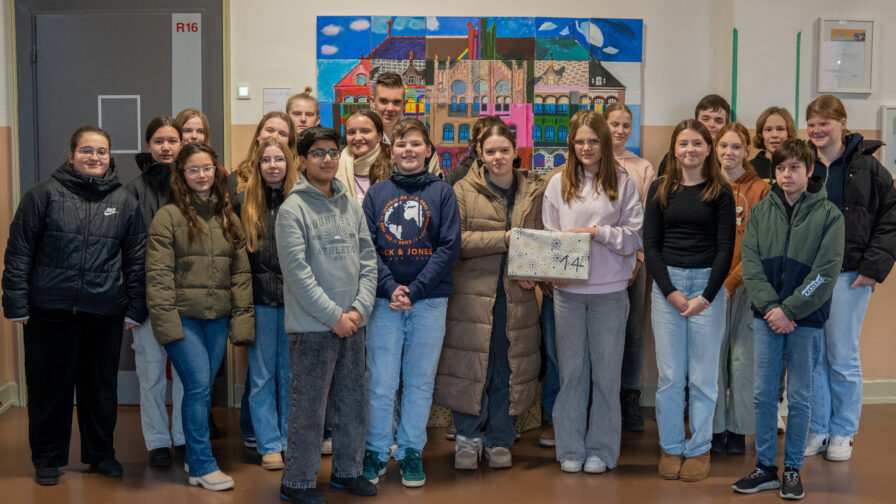 Am Montag, d. 16.12.2024, war es endlich für die Klassen 8a, Ea und 9b soweit: Sie durften ihre Adventskalendertürchen für die Tage 14.12., 15.12. und 16.12.2024 öffnen.