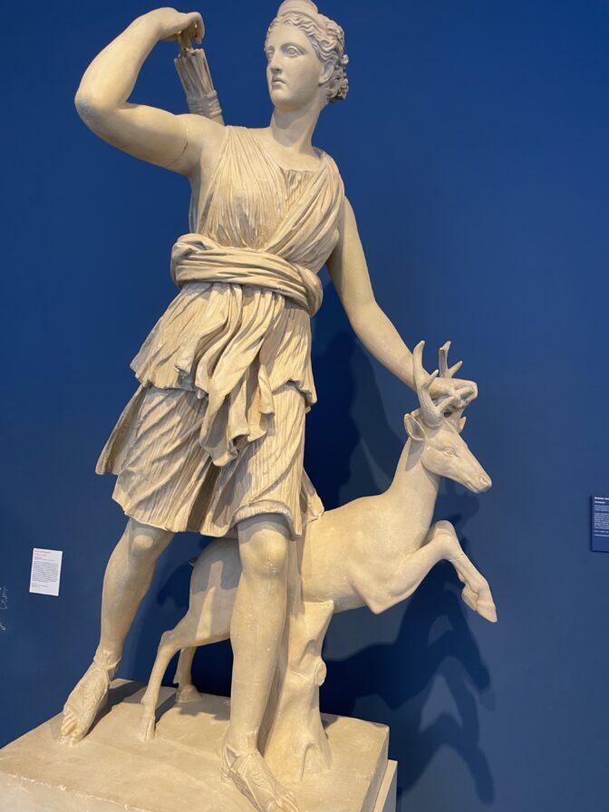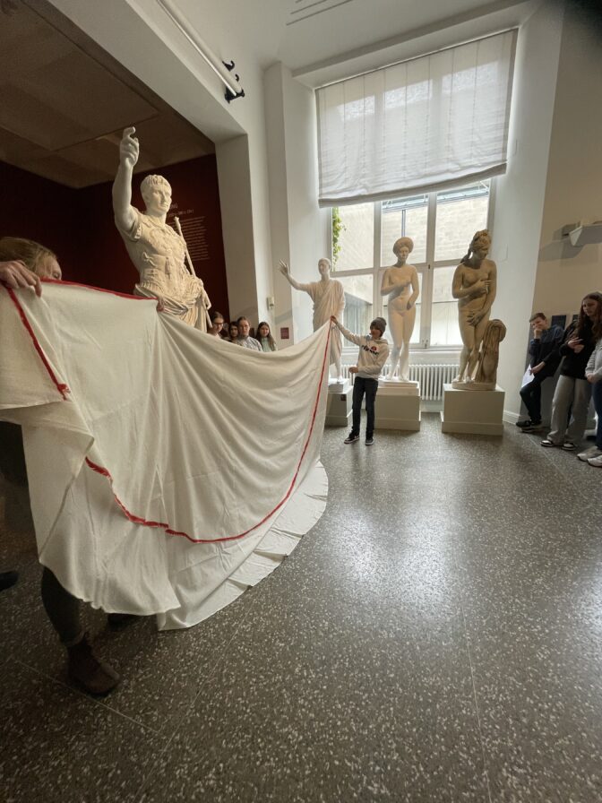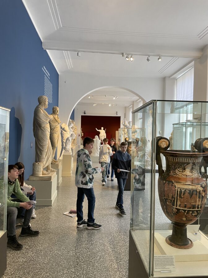 Die Latein-Schüler*innen der 7. und 8. Klassen haben sich zusammen mit Herrn Hartwig und Frau Tuttaß am Donnerstag via Zug auf den Weg nach Kiel gemacht und die Antikensammlung in der Kunsthalle besucht. Dort hat uns eine klassische Archäologin Spannendes über die griechischen und römischen Götter erzählt. Auch das Rätseln kam nicht zu kurz, denn in einer teils kniffligen Rallye ging es für uns kreuz und quer durch die Antikensammlung, um die Fragen zu beantworten. Bei der Auflösung haben wir viel Neues über Caesar, Augustus und Co. erfahren, aber auch alte Bekannte aus unserem Unterricht wieder getroffen, wie zum Beispiel Diana, die Göttin der Jagd. Und besonders hat uns alle überrascht, aus wieviel Stoff eine römische Toga bestand. Es war eine tolle Begegnung mit antiker Kunst und Kultur!
