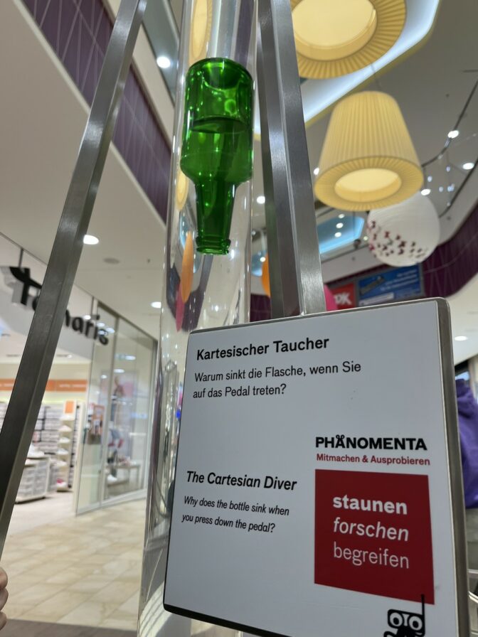 Dazu gehörten Experimente wie das Kugelballett, ein begehbarer Bogen, ein kartesischer Taucher, so wie auch optische Täuschungen, Zerrspiegel und Weiteres.