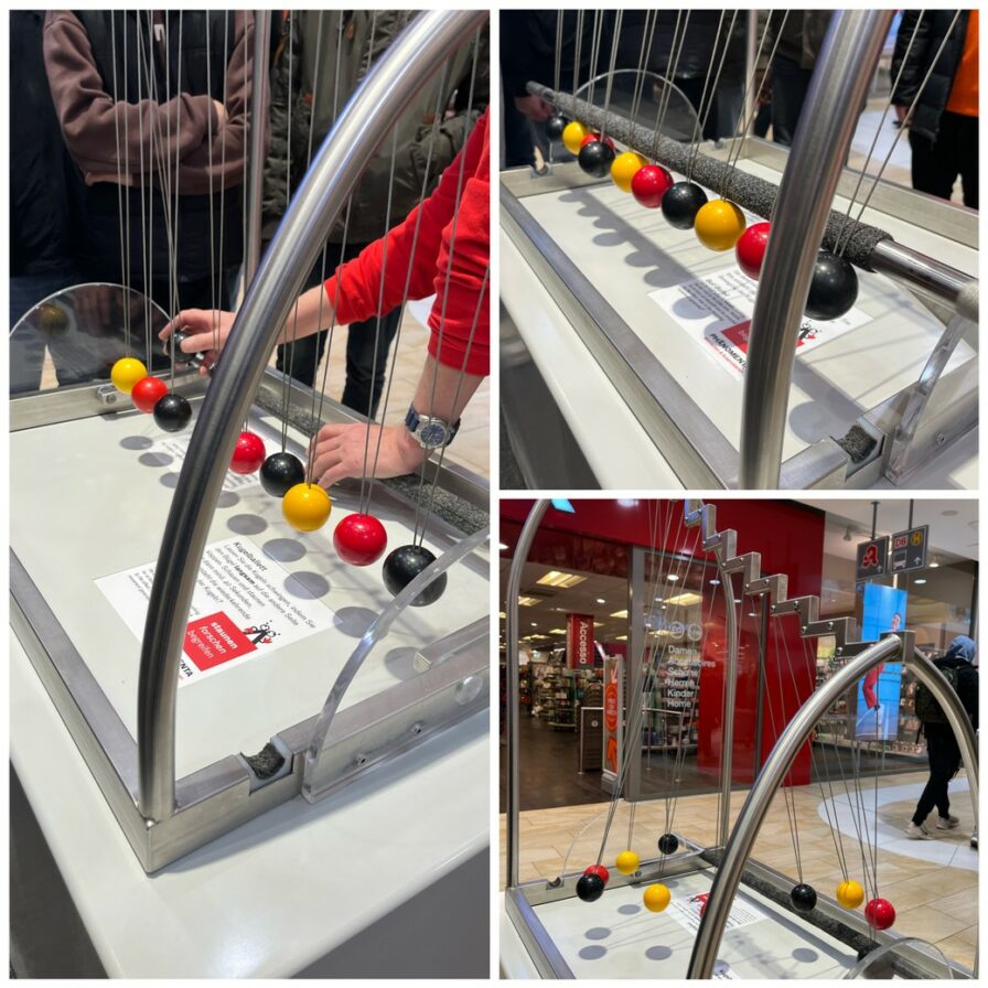Dabei haben die Schüler*innen die Gesetze und Phänomene der Physik näher betrachtet, indem sie die vielfältigen Ausstellungsobjekte erkundeten und selbst auf eigene Faust experimentierten, um so die Physik und Naturwissenschaft besser verstehen zu können.