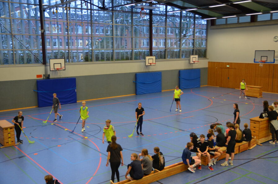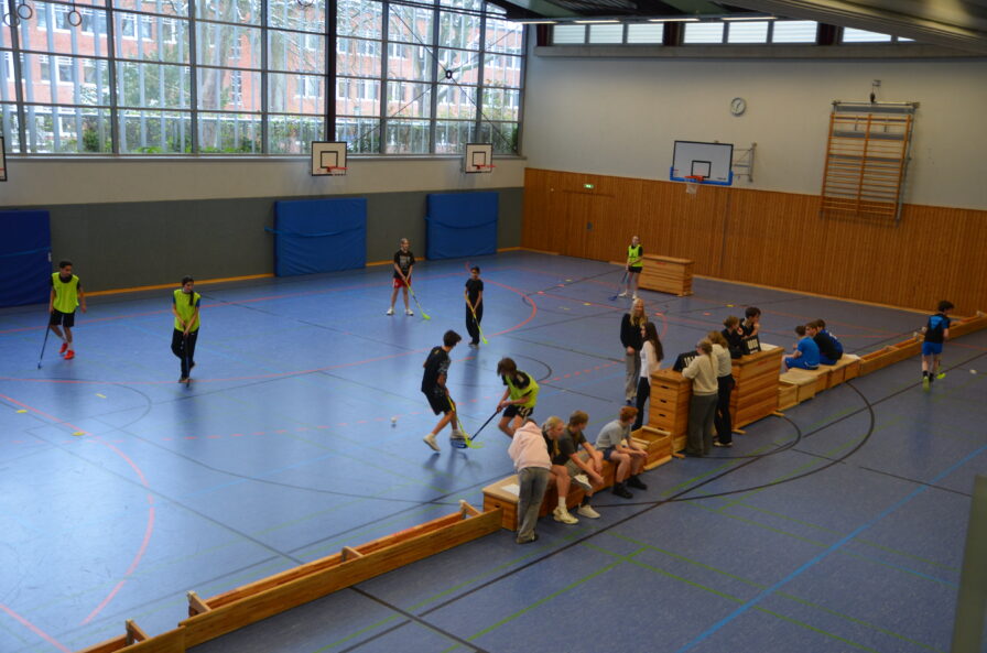 Am Dienstag, dem 27. Januar 2026, fand das Floorballturnier für die Klassen des 7. und 8. Jahrgangs statt. Jede Klasse nahm mit vier Teams teil, die auf drei Spielfeldern parallel gegen die Mannschaften der anderen Klassen spielten. Dabei herrschte von Anfang an eine sportliche und fröhliche Stimmung.